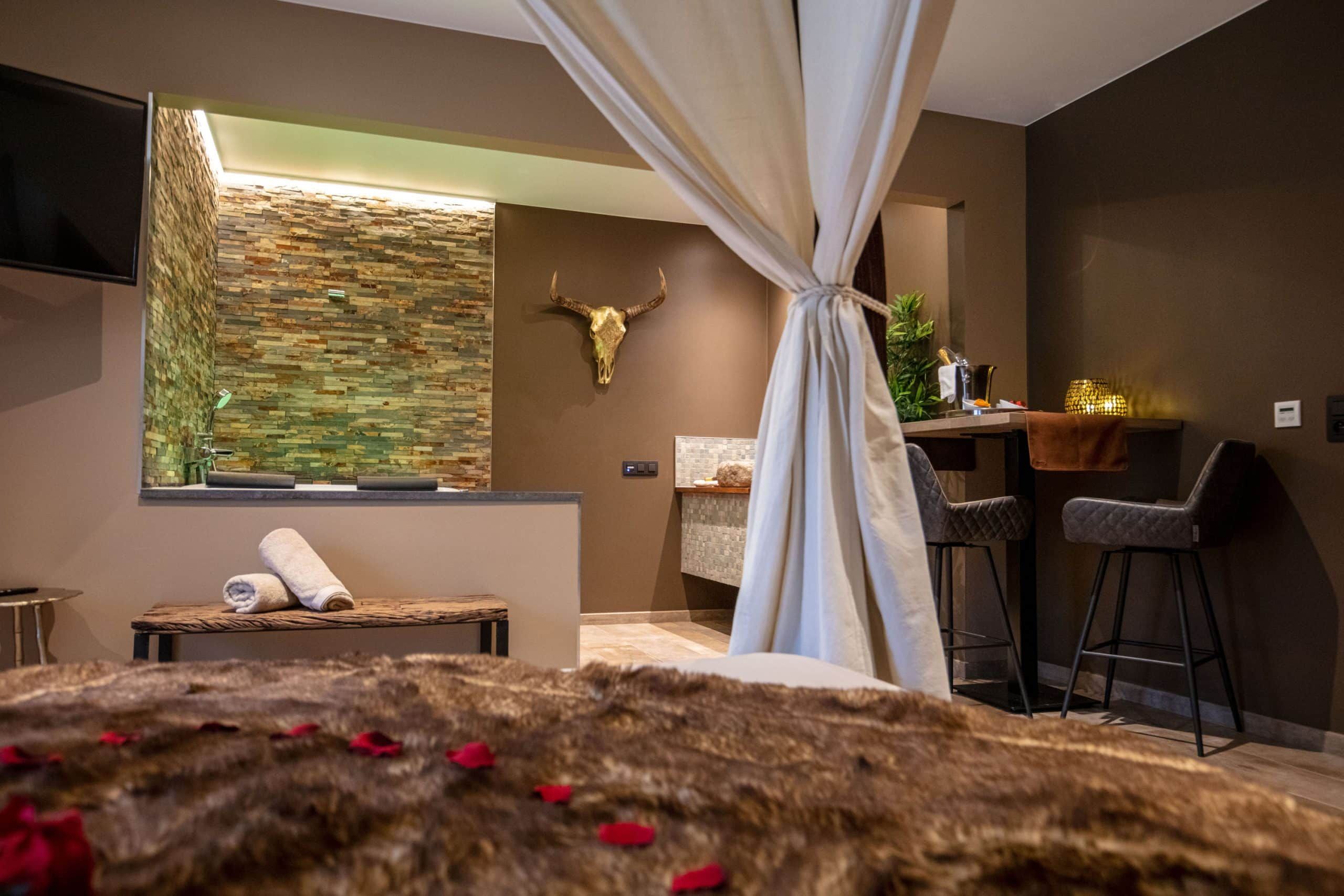 Départ pour un moment exotique, rien qu’à deux dans une belle suite avec un grand jacuzzi.